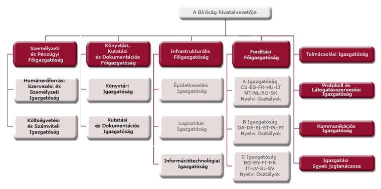 A Bíróság hivatalvezetője az intézmény főtitkári teendőit látja el: a Bíróság elnökének felügyelete alatt ő irányítja a különböző szervezeti egységeket.